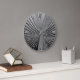 Art Deco themed pattern based on a stylized palm leaf, rendered in a 3-d effect in silver chrome colour