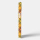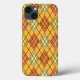 Ce boîtier de téléphone a un design art déco de formes en diamant fait d'angles superposés en lignes noires colorées dans les tons orange et jaune avec des lignes noires en diagonale donnant l'apparence d'un Jacquard