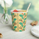 This paper cup features Leslie Sigal Javorek's contemporary adaptation of an Art Deco style Japanese wallpaper from the 1920's. Highly stylized strawberry plants w/ emerald green leaves climb a buttercup yellow wall between black polka dot trellises. See coordinating home decorating products at HoMeArts.