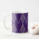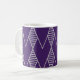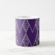 This mug has an art deco design of diamonds in silver on a field of blue.