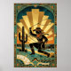 Art Deco Cowgirl Lasso Cactus Desert Sunset Poster