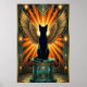 This serene art deco black cat sleeps curled within perfect golden concentric circles above a subtle teal architectural base. The soft orange halo glow and refined 1920s geometric patterns create a peaceful, luxurious atmosphere ideal for bedrooms, meditation spaces and calm interiors where elegance meets tranquility.