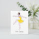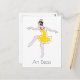 Illustration of a dancer in an Art Deco style. Dancing woman is wearing a yellow dress with a red collar. Easily personalise the this card by editing the template text. Text read Art Deco.