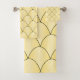 Bath towel set, consisting of a face cloth, hand towel and bath towel with an art deco design. You can customise this bath towel set with any text of your choice. Should you require any help with customising then contact us through the message link on this page. Art deco design bathroom towel set