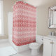 This shower curtain has an art deco design of overlapping diamonds in ombre effect of red on a field of white.