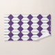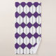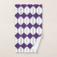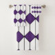 This towel set has an art deco design of white hexagons with a black line down the middle and purple diamonds.
