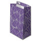 This gift bag has an art deco design of diamonds in gold on a field of purple.