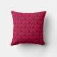 This throw pillow has an art deco design of diamonds with vertical and diagonal lines and circles on a field of hot pink.