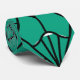This necktie has an art deco design of diamonds with vertical, diagonal, and curved lines on a field of green.