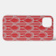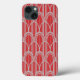 This phone case has a design made of domes and vertical lines in silver on a field of rust.