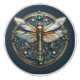 Gorgeous Art Deco image of a Dragonfly with detailed elegant gossamer effect wings, against a beautiful, intricately detailed Art Deco tile. Pretty shades of blue, green, turquoise, and gold.