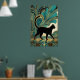 This regal art deco design presents a black cat seated on an ornate throne, inspired by Egyptian motifs and framed with glowing gold arches and teal geometric details. The warm halo lighting and intricate patterns evoke the glamour of the 1920s with a mythic twist. Perfect for cat lovers, occult‑style decor and art deco themed rooms, it brings a luxurious, mysterious touch to any wall.