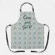 This apron has an art deco design of orange diamonds with right angles inside and teal circles with ovals overlapping, all repeating across the pattern. If you like the design but prefer different colours, message me.