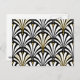 Digital reproduction of a classic, Art Deco wallpaper, fan pattern postcard - white on black, embellished with gold