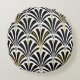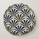 Digital reproduction of a classic, Art Deco wallpaper, fan pattern round pillow - black on white, embellished with gold