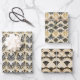 Art Deco Fan Pattern in Black & Gold on White Wrapping Paper Sheet