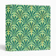 Digital reproduction of a classic, Art Deco wallpaper fan pattern - pine green on light mint green, embellished with gold