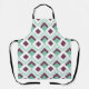 This apron has an art deco design of seafoam green diamonds with diagonal lines and eggplant diamonds on a field of white.
