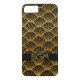 Classic '20s Art Deco patterned phone case in black and gold with monogram