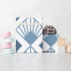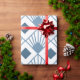 This wrapping paper has an art deco design of dusty blue diamonds with diagonal lines and dark blue diamonds on a field of white.