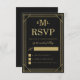 Cartes RSVP de mariage art déco en faux or chic. Les élégantes cartes RSVP de mariage sont dotées d'une bordure d'art déco en faux or, d'un arrière - plan gris foncé et d'un monogramme mariage. Changez le style de police en cliquant sur le bouton "Customiser".