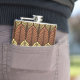 Art Deco Feather Pattern, Dark Brown and Rust Hip Flask