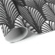 Wrapping paper in a vintage Art Deco wallpaper pattern based on a stylized feather - shades of silver grey / grey on a black background
