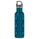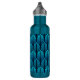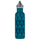 Water bottle in a vintage Art Deco wallpaper pattern based on a stylized feather - shades of turquoise / peacock blue on a dark navy / indigo blue background