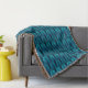Art Deco Feather Pattern, Turquoise and Navy Throw Blanket