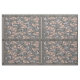 The style we now call "Art Deco" began in France but soon spread to other fashion conscious countries, including Finland! The large panes set within a grid layout w/ grey striped borders contain whimsical Finish characters, rushing in every direction, dressed in luxurious, draping overcoats in a mix of Art Deco style patterns, in shades of grey, muted lavender, cameo pink, a dash of turquoise & black.