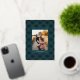 This holiday new year card features a single photo and art deco inspired geometric pattern around it in foil.