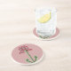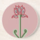 This stylish coaster is decorated with my original digitally created Art Deco flower. The petals of the flower are outlined in lipstick red and filled in with black and white zebra stripes. It stands on a tall, two-tone green stem with curled leaves in a v-shape at the base.