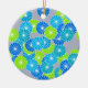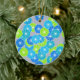 Art Deco flower pattern - blue and lime green Ceramic Ornament