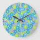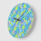 Art Deco flower pattern - blue and lime green Large Clock