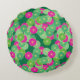 Art Deco flower pattern - shades of green, fuchsia Round Pillow