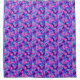 An Art Deco pattern shower curtain based on a traditional, stylized chrysanthemum pattern used in Japanese textiles, in shades of violet, orchid, lavender, pale and deep blue outlined in gold, on deep, royal purple background