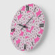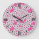 An Art Deco pattern based on a traditional, stylized chrysanthemum pattern used in Japanese textiles, in creamy white outlined in black with a deep pink background