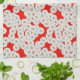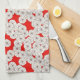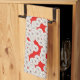 Art Deco flower pattern - white on red Kitchen Towel