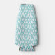This bottle cooler has an Art Deco design of diamonds connected by curved lines in turquoise.