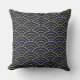 Dark blue and faux golden decorative, Art Deco, Great Gatsby 1920 style throw pillow with semicircles on both sides, designed by Delightful Homes.