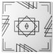 Ceramic tile with an art deco pattern of squares, rectangles, lines, and triangles. In Black on White.