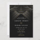 Make the most amazing Great Gatsby wedding day with these Art Deco Wedding Invitations, and reflect your unique style. They are featuring a string lights inspired by the flapper dresses from the roaring 1920s. This vintage design has white and gold string lights making the centre of attention and setting the tone for your event. The wording is in a modern white font with some gold script font elements on a rich black background. The backer features an art deco pattern that matches the invite all over. You can customize the font, colour and size for all the elements.