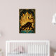 A sleek black feline stretches gracefully against a magnificent golden sunburst. Featuring sharp geometric rays and a deep teal marble pedestal, this 1920s-inspired masterpiece brings a bold architectural energy to any modern interior or gallery wall.