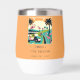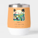 A bold and colourful art-deco-style 50th birthday thermal wine tumbler in vibrant orange, green, and cream with pink flamingos, a golf cart, and palm trees. This stylish wine tumbler is a great keepsake for your party guests. Hopefully, the birthday gal scored a hole-in-one, and you can celebrate it accordingly!