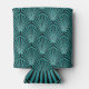 Art Deco glamour in green fan motifs. Black & green stripes frame vintage elegance.