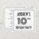 The front of this elegant and 1920s-1930s style inspired tenth birthday celebration invitation card design features a customizable name, an intricate art deco style inspired number “10th”, the message “BIRTHDAY PARTY!”, and a border pattern consisting of lines. The back features personalized details about the event, such as the date, time, venue/location, and any other information that may be important. Stylish, elegant, customized invitations like these might be used to invite guests to a birthday party/gathering being held to celebrate somebody’s 10th birthday. [~Z0000614]