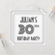 The front of this 1920s/1930s style inspired thirtieth birthday celebration/party invitation card design features a personalized name, a fancy art deco style inspired number “30th”, the message “BIRTHDAY PARTY!”, and a multi-line border. The back features personalized details about the event, such as the date, time, venue/location, and any other information that may be relevant. Stylish, luxurious, customized invitations like these might be used to invite guests to a birthday gathering/party being held to celebrate somebody’s 30th birthday. [~Z0000614]