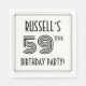 This stylish and 1920s/1930s style inspired fifty-ninth birthday celebration paper napkin design features a personalized name, a fancy art deco look inspired number “59th”, the message “BIRTHDAY PARTY!”, and a multi-line border. Luxurious birthday themed paper napkins like these might be used at a party in celebration of somebody’s fifty ninth birthday. [~Z0000613]