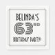 This stylish and Roaring Twenties inspired sixty-third birthday party/celebration paper napkin design features a personalized name, a fancy art deco look inspired number “63rd”, the message “BIRTHDAY PARTY!”, and a multi-line border. Paper napkins like these might be used at a party held in celebration of somebody’s 63rd birthday. [~Z0000613]