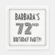 This luxurious and 1920s/1930s style inspired seventy-second birthday party paper napkin design features a personalized name, a fancy art deco look inspired number “72nd”, the message “BIRTHDAY PARTY!”, and a multi-line border. Paper napkins like these might be used at a birthday party held in celebration of somebody’s seventy second birthday. [~Z0000613]